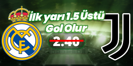 İlk yarı 1.5 Üstü Gol Olur22 Ekim 22:00Real Madrid - Juventus