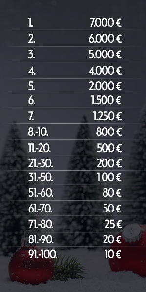 Kış Karnavalı’nın üçüncü haftası 40.000 Euro nakit ödüllü Rulet Turnuvası ile devam ediyor. 17-23 Aralık tarihleri arasında Exclusive Rulet ve Lightning Rulet masalarında rekabet hız kesmiyor.