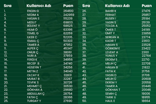 - 17 Aralık tarihine kadar sıralamada yerini alacak olan kullanıcılar kampanya sayfasında belirlenen ödülleri kazancaktır.
