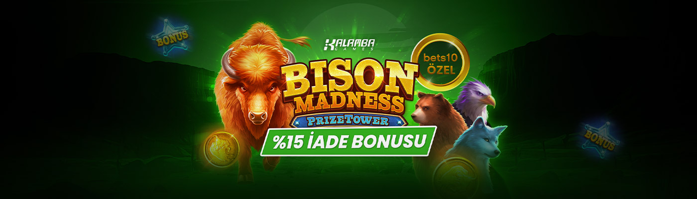 - İade Bonusu, kullanıcının kampanyaya katıldığı andan yukarıda belirtilen kampanya bitiş tarihine kadar Bison Madness PrizeTower slotunda oluşan net kayıpların %15 oranı olarak hesaplanır.